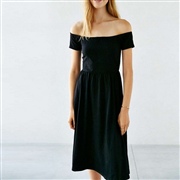一字領露肩鎖骨高腰連身裙 [連身裙]