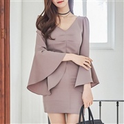 顯瘦修身喇叭袖連身裙 [連身裙] #1-黑色 #2...