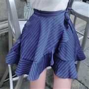 不規則荷葉邊條紋短裙半身裙 [半身裙] #1-寶藍...