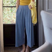 百褶闊腿褲甩褲休閒褲褲九分褲 [褲子] #1-黑色...