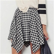 復古高腰不規則格子半身裙 [半身裙] #1-黑白格...