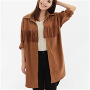 鹿皮絨長袖流蘇中長款外套 [外套]