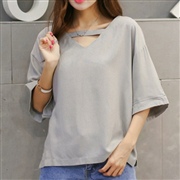 純色插肩袖荷葉邊袖休閒寬鬆娃娃衫 adg [上衣]...