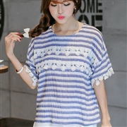 寬鬆細橫條紋上衣 [上衣] #1-灰色 #2-藍色