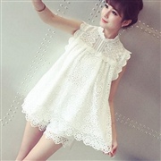 蕾絲鏤空花朵圖案雪紡衫娃娃衫 [上衣]