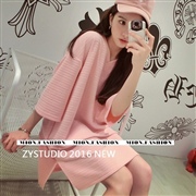 簡顯瘦噠長上衣純色分袖寬鬆 [連身裙] #1-粉色...