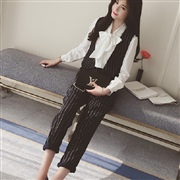 條紋兩件套短款西裝馬甲+九分褲 [套裝]