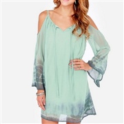 寬鬆吊帶背心雪紡長袖露肩連身裙 [連身裙]