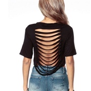 燙金字母圓領流蘇短款上衣 [上衣] [TEE]