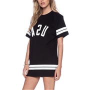 印花字母短袖上衣連身裙 [連身裙] #1-白色 #...