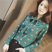 復古小狗印花蝴蝶結雪紡衫襯衫 [上衣] [襯衫]
