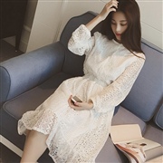 排扣圓領綁帶收腰蕾絲連身裙 [連身裙] #1-白色...