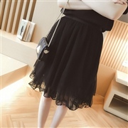 寬鬆純色花邊雙層網紗裙半身裙 [半身裙]