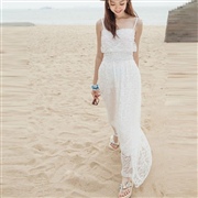 蕾絲荷葉領吊帶背心高腰波西米亞沙灘長裙 [連身裙]...