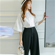 兩件套九分褲雪紡蝙蝠袖襯衫闊腿褲套裝 [套裝]
