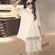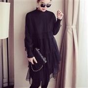 寬鬆中長款假兩件蕾絲拼接長袖襯衫連身裙 [連身裙]...