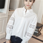 寬鬆白色拼接蕾絲泡泡袖宮廷長袖襯衫 [上衣] [襯...