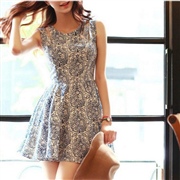 印花無袖收腰氣質百褶連身裙 [連身裙] #1-白色...