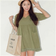 復古流蘇寬鬆口袋連身裙 [連身裙] #1-白色 #...