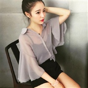 荷葉袖寬鬆顯瘦透視雪紡衫娃娃衫 [上衣]