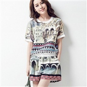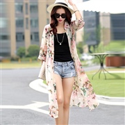 雪紡印花寬鬆七分袖中長款外套 [外套] #1-粉色...