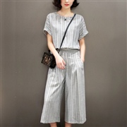 休閒套裝上衣闊腿褲豎條紋兩件套 [套裝] #1-白...