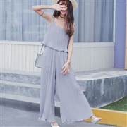 百褶雪紡吊帶背心闊腿褲裙荷葉邊連體裙 [連身裙] ...