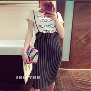 氣質字母修身上衣+背帶包臀半身裙兩件套 [套裝]