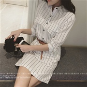 翻領帶腰帶條紋襯衫連身裙 [連身裙]