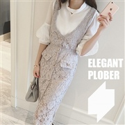 蕾絲鉤花顯瘦背帶連身裙 [連身裙] #1-灰色 #...
