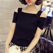 性感露肩破洞一字領短袖上衣 [上衣] [TEE] ...