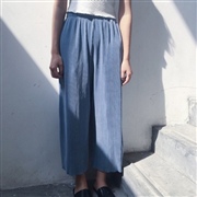 彈力螺紋顯瘦高腰休閒長褲九分褲百搭闊腿褲 [褲子]...