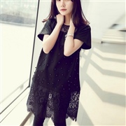 鏤空釘珠蕾絲下擺上衣 [上衣] #1-白色 #2-...