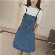 純色連衣吊帶背心牛仔背帶裙 [連身裙]