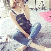 復古寬鬆顯瘦破洞牛仔小腳背帶連身褲 [連身褲]