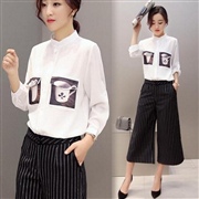 兩件套氣質襯衫七分條紋闊腿褲 [套裝]