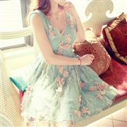 蓬蓬紗露背立體花朵釘珠蕾絲連身裙 [連身裙]
