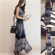 復古印花雪紡連身裙 [連身裙] #1-墨綠色 #2...