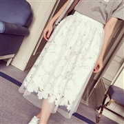 水溶蕾絲拼紗鬆緊腰半身裙 [半身裙] #1-灰色 ...