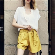 立體刺繡蝴蝶裝飾泡泡袖寬鬆白襯衫 [上衣] [襯衫...