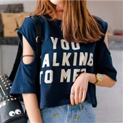 後背貼布數位元字母印花露肩短款衛衣上衣 [上衣] ...