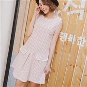 格子短裙娃娃裙無袖毛呢背心套裝 [套裝] #1-粉...