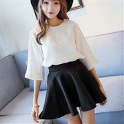 花邊釘珠長袖套頭衫寬鬆上衣 [上衣] #1-白色 ...