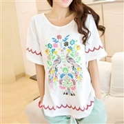 孔雀印花圓領寬鬆短袖上衣 [上衣] [TEE]