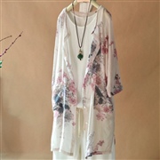 復古印花七分袖模擬絲襯衫 [外套] #1-水粉花 ...
