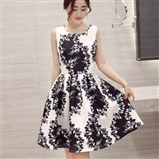 水墨印花修身無袖背心裙連身裙 [連身裙]