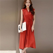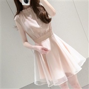 修身雪紡裙顯瘦收腰中裙短袖連身裙 [連身裙]