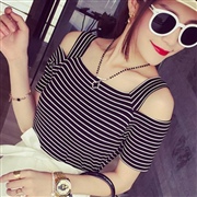 簡約露肩舒適親膚百搭質顯瘦短袖上衣 [背心.馬甲]...