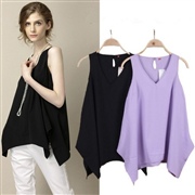 不規則下擺休閒雪紡衫 [背心.馬甲] #1-紫羅蘭...