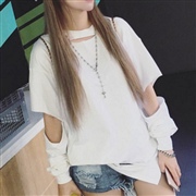 中長寬鬆袖子鏤空前短後長白色上衣 [上衣] [TE...